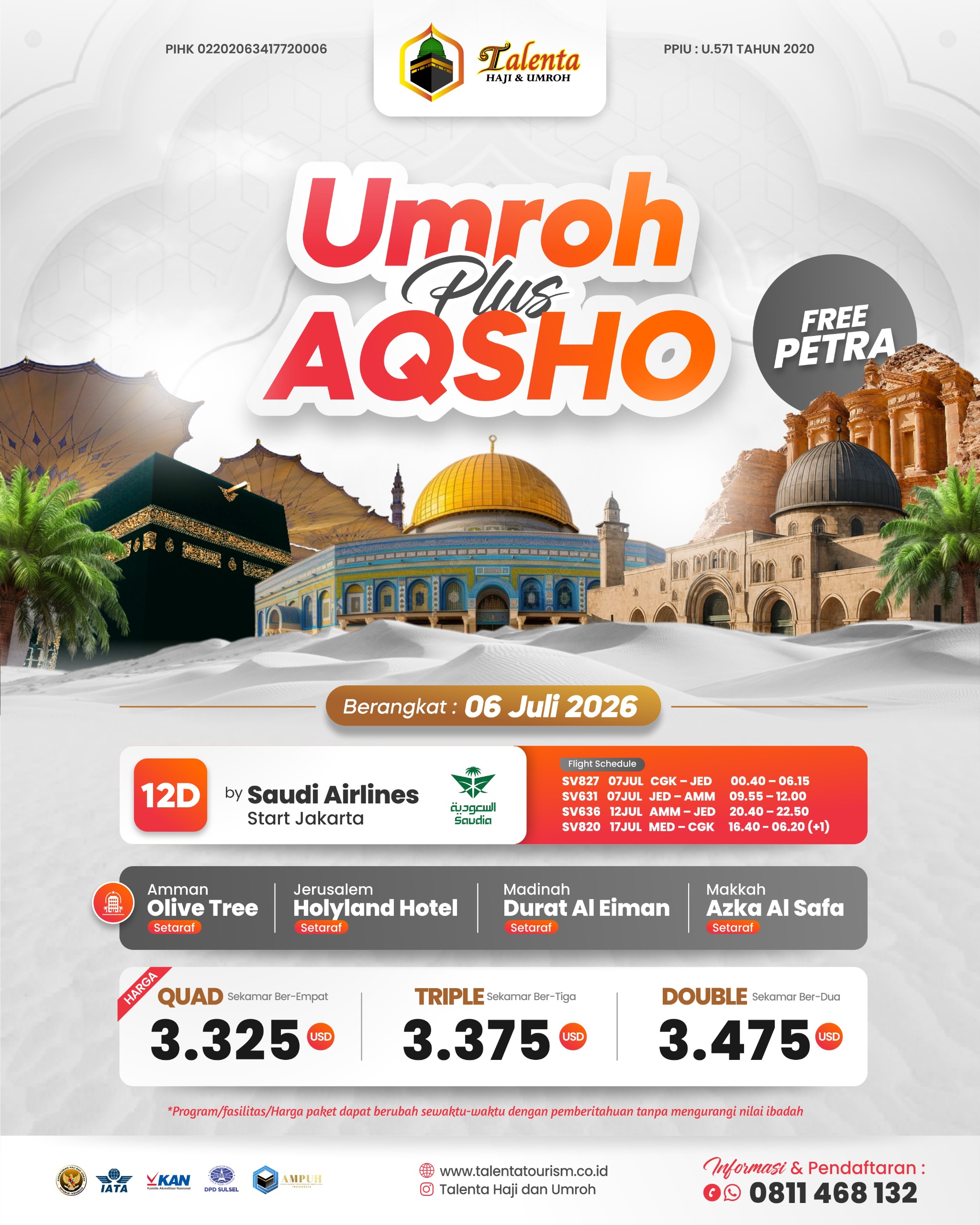 UMROH PLUS AQSA PAKET 12 HARI FREE PETRA
