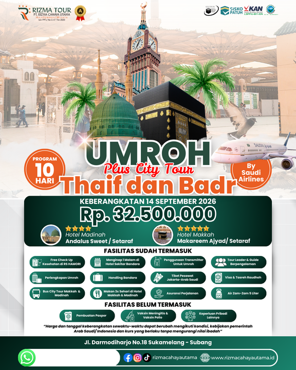 KepulanganUmroh Plus Badr 14 September 2026 Bersama Travel Umroh PT. Rizma Cahaya Utama